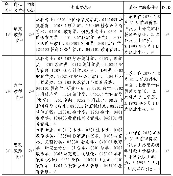 以政府購買服務(wù)方式招聘6名職校文化學(xué)科教師到縣職業(yè)技術(shù)學(xué)校任教,為縣非事業(yè)編制聘用人員。聘用期間薪酬待遇享受在編人員同等待遇,具體按當(dāng)前縣招聘的公辦幼兒備案數(shù)教師待遇標(biāo)準(zhǔn)執(zhí)行。崗位條件及名額為: